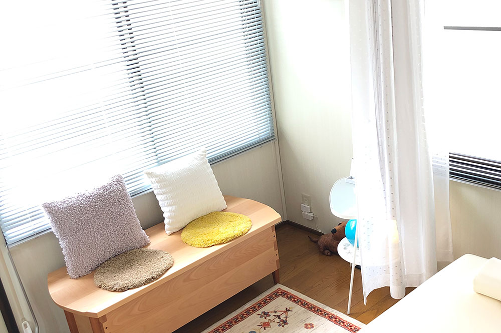 6畳のお部屋に1台のベンチと1台のベッド、ですので完全予約制のプライベート空間です。おひとりずつ、時間をたっぷり取らせていただいております。